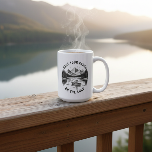 Inspirational Nature Mug, Campfire Coffee Cup, Motivational Gift for Fishermen, Outdoors Lover, Christian Decor
