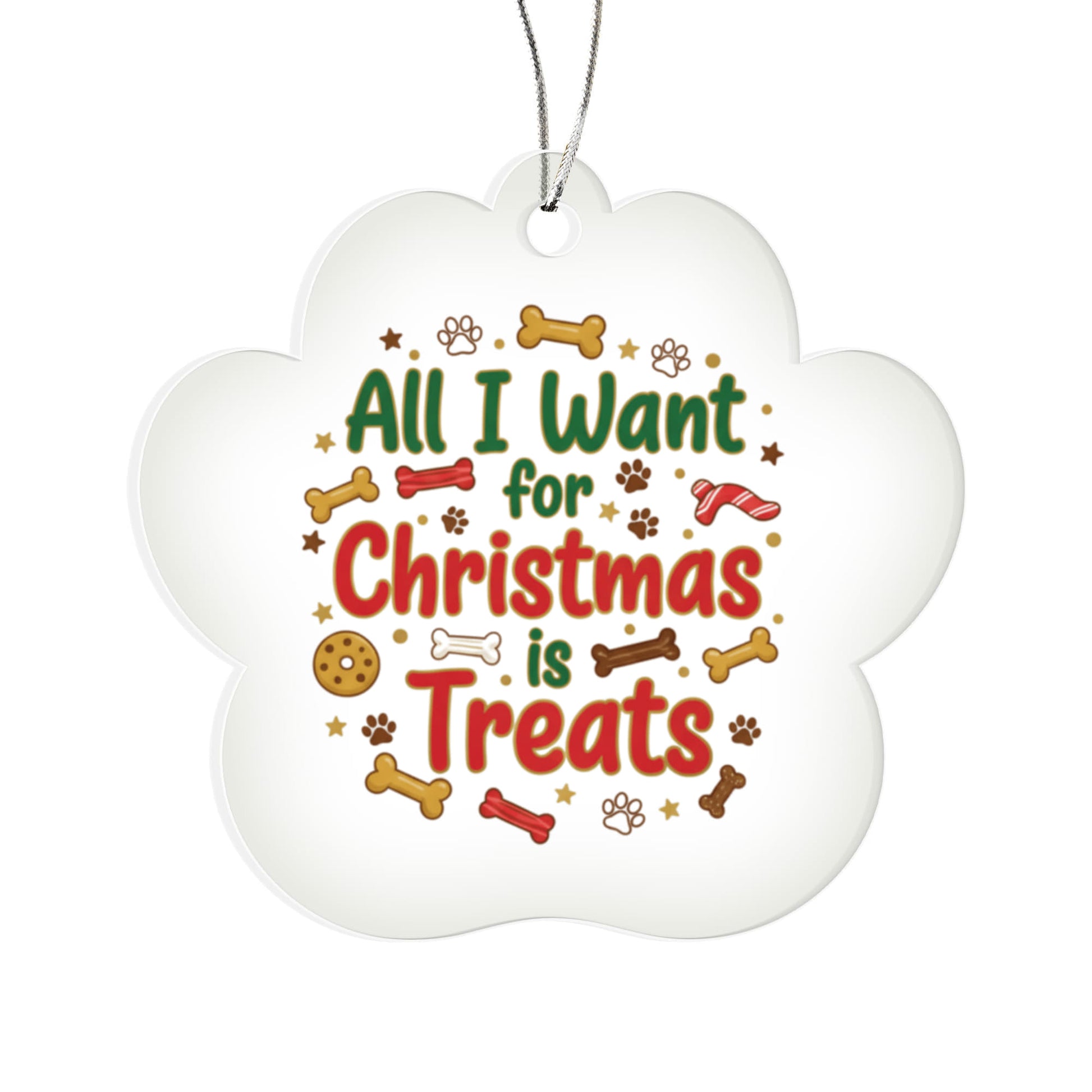 🎄 All I Want for Christmas is Treats! Every dog lover knows this is the truth. Celebrate your pup's holiday wish list with this charming acrylic paw ornament that brings a touch of magic and humor to your holiday decor.