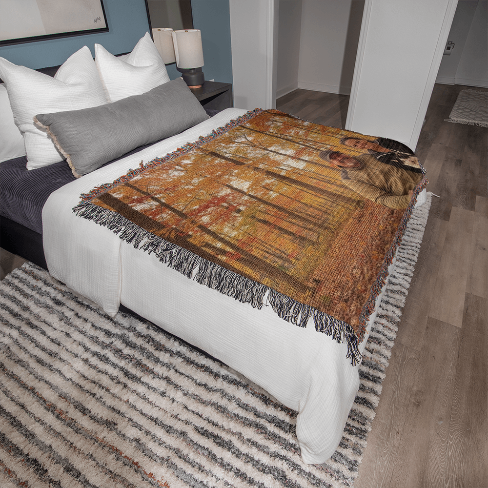 This lovingly crafted blanket is more than just home décor—it's a testament to the joy and unconditional love our pets bring into our families. Whether it's a treasured photo of your beloved companion or a special family moment with your furry friend, this woven keepsake preserves those precious memories for generations to come.