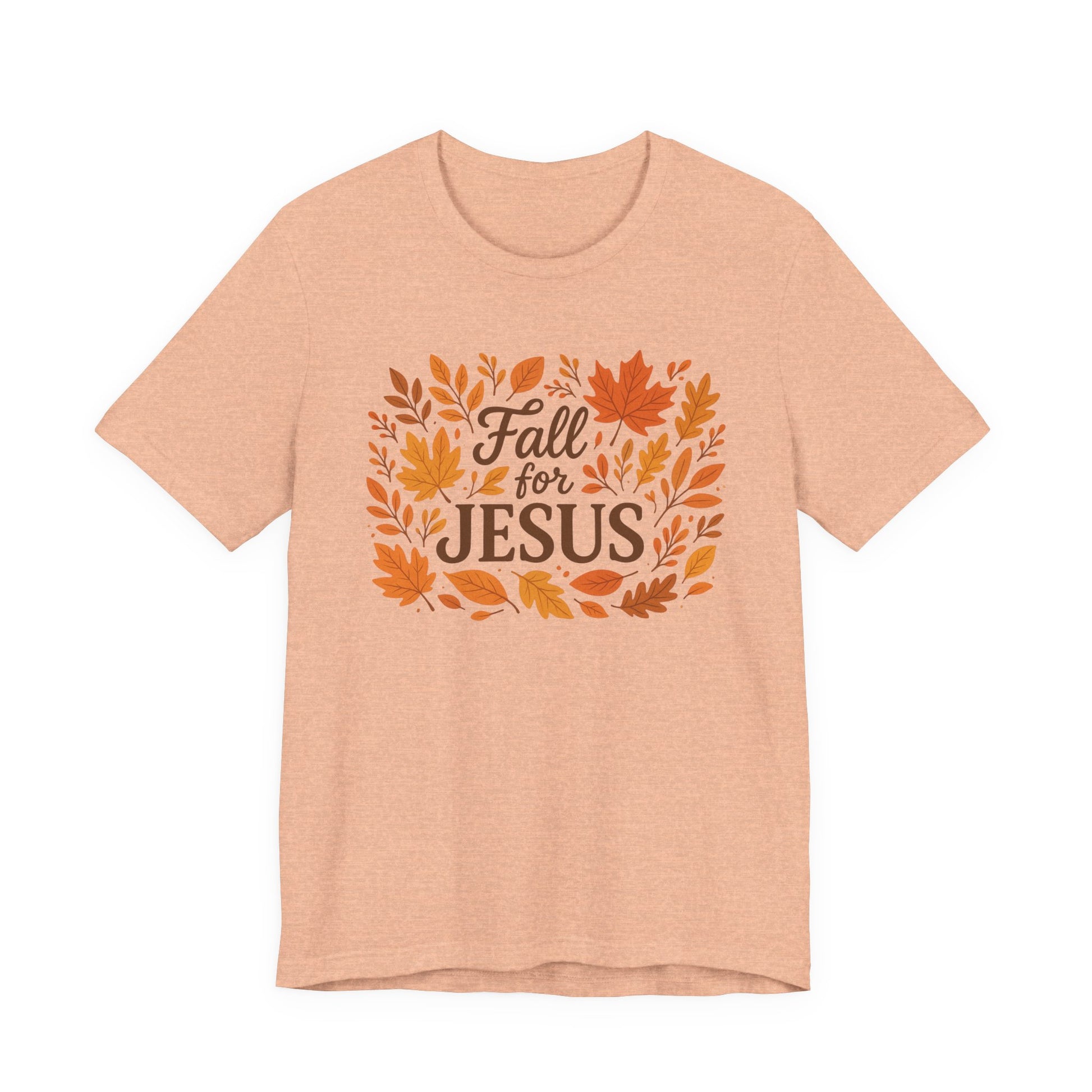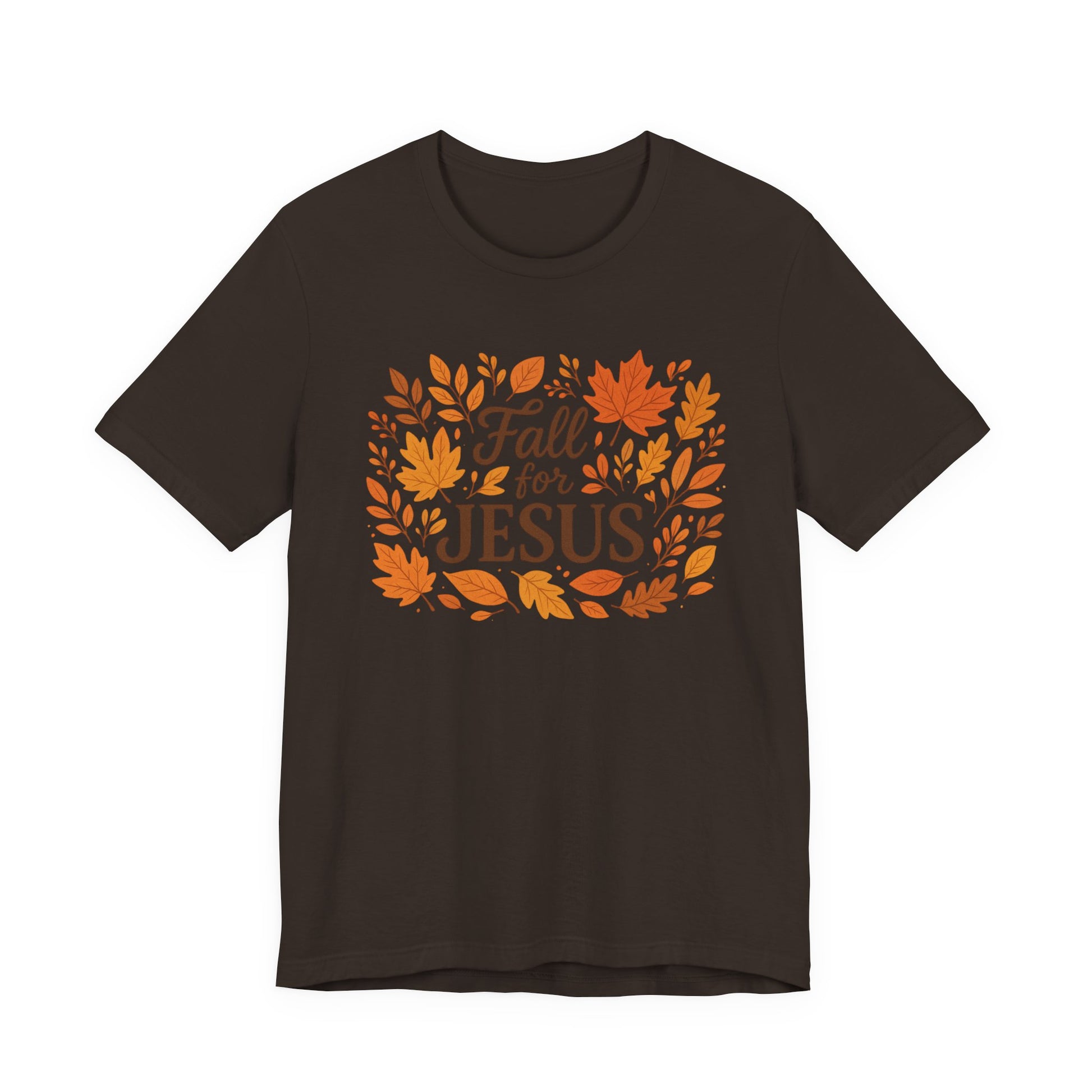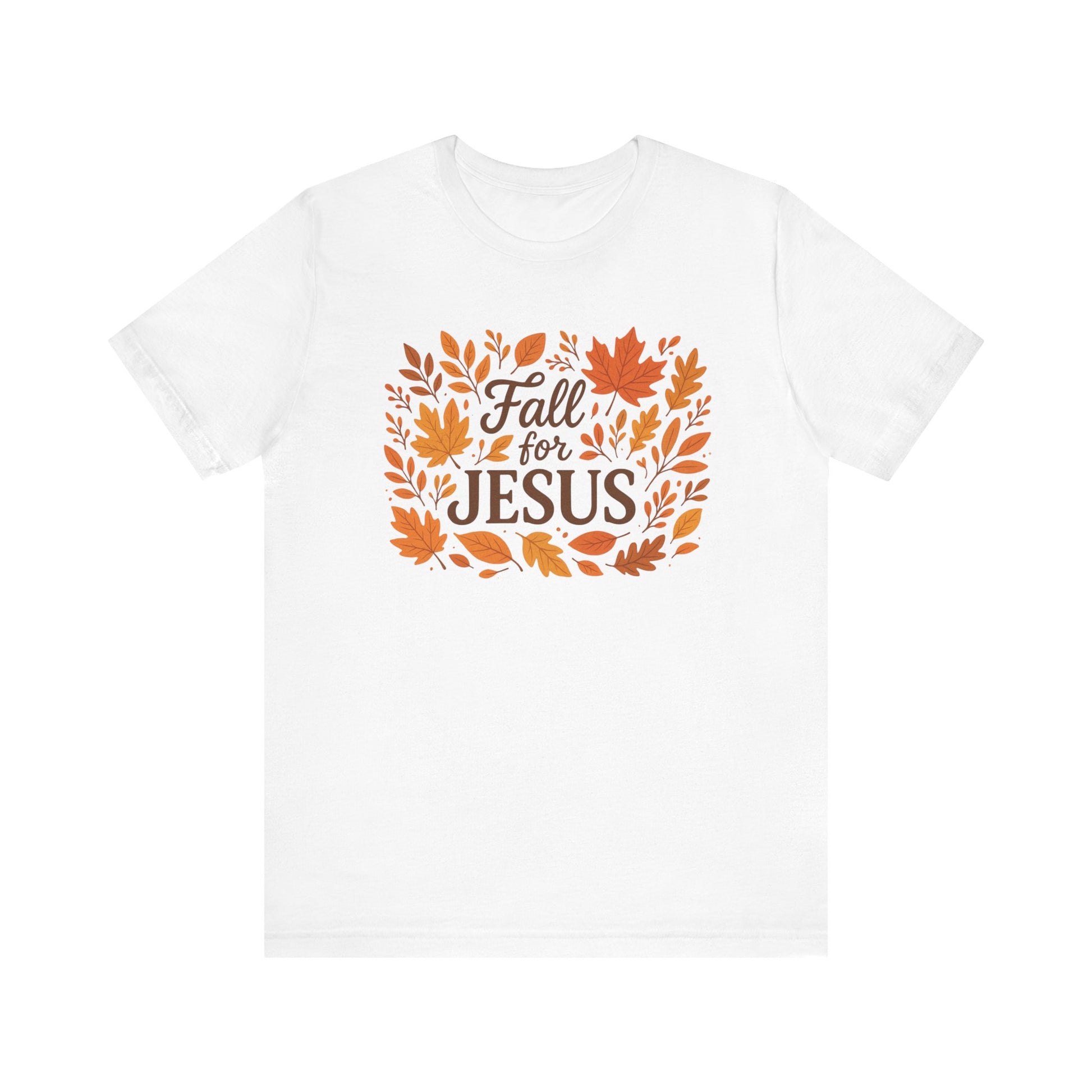 Fall for Jesus Short Sleeve Tee, Autumn T-Shirt, Christian Apparel, Thanksgiving Gift, Faith-Based Clothing