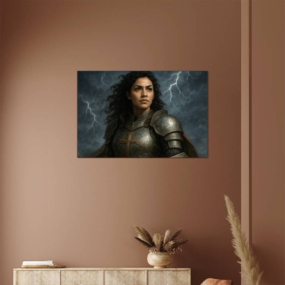 Transform your space with this stunning High Gloss Metal Art Print featuring the powerful imagery of the Full Armor of God standing strong in the midst of the storm. This premium faith-inspired wall art serves as a daily reminder of spiritual strength, divine protection, and unwavering courage.