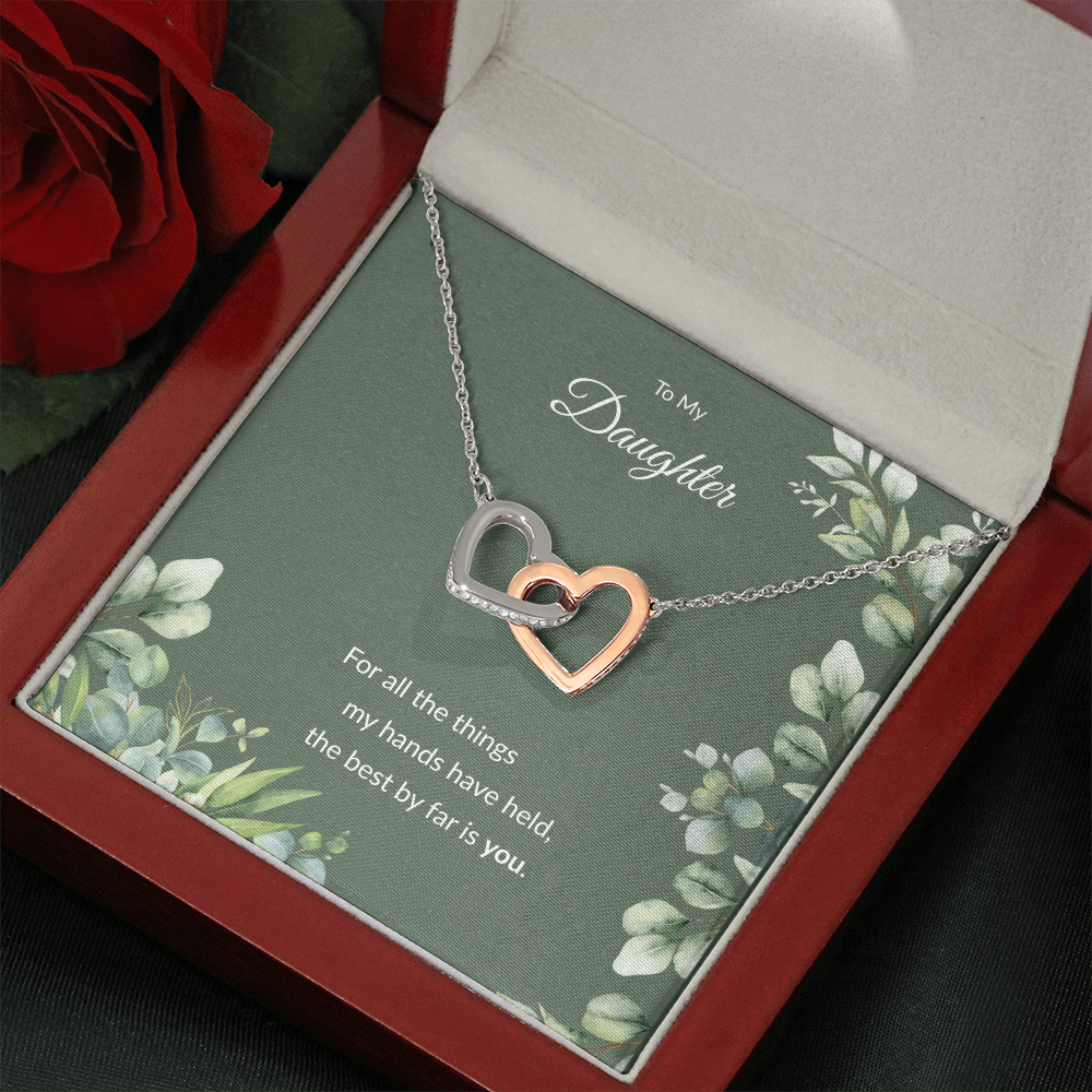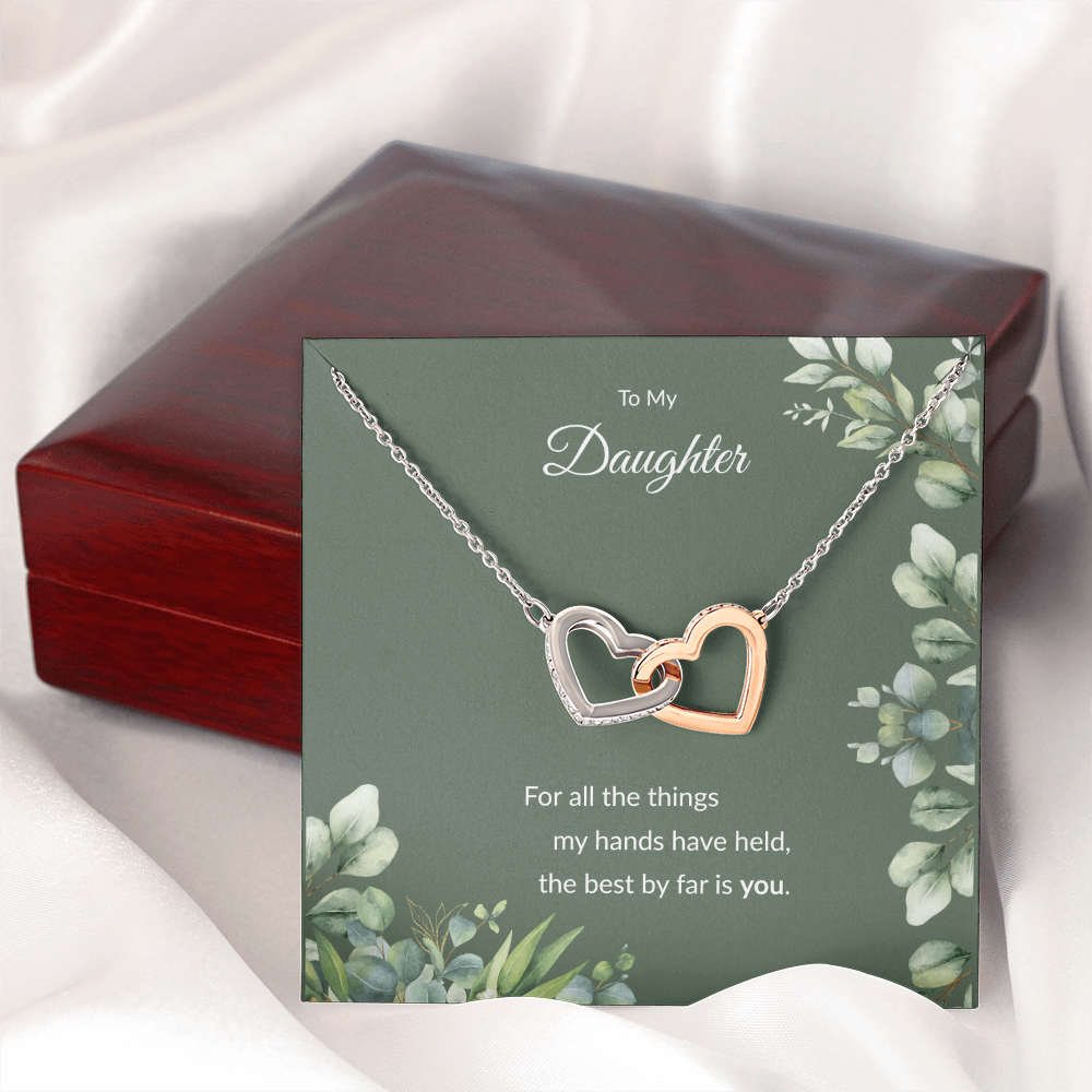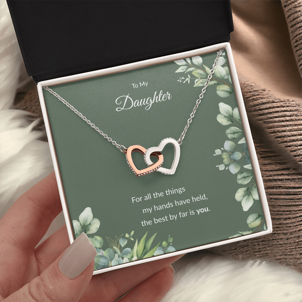 Each necklace comes with a special keepsake card that reads: "To My Daughter, for all the things my hands have held, the best by far is you."